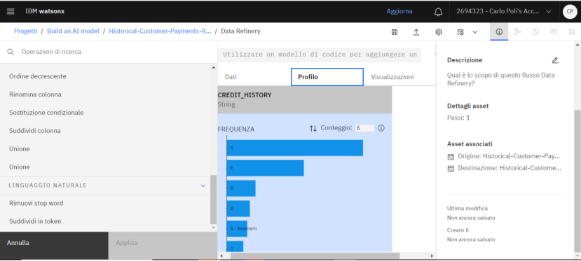 - Click on the Profile tab in Data Refinery. If it’s grayed out or disabled, wait a bit; it might be processing the dataset.